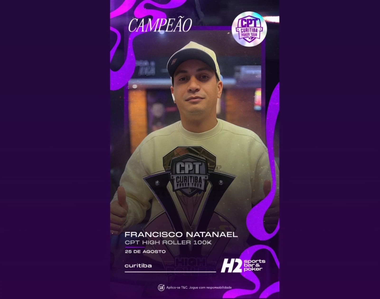Já no HU as coisas ficaram mais fáceis graças à boa leitura de Natanael do seu oponente: “No heads-up, o adversário foi o Greg, um jogador experiente, mas extremamente agressivo, com VPIP alto e tendência a barrelar em praticamente todos os spots. Essa característica abriu espaço para eu impor meu jogo, escolhendo mãos de baixa equidade para aplicar 3-bets, que passaram com frequência. A dinâmica favoreceu a acumulação rápida de fichas e, aliado a um baralho favorável, o HU se resolveu de forma ágil. O desapego do Greg às fichas facilitou o caminho e garantiu a vitória”.
