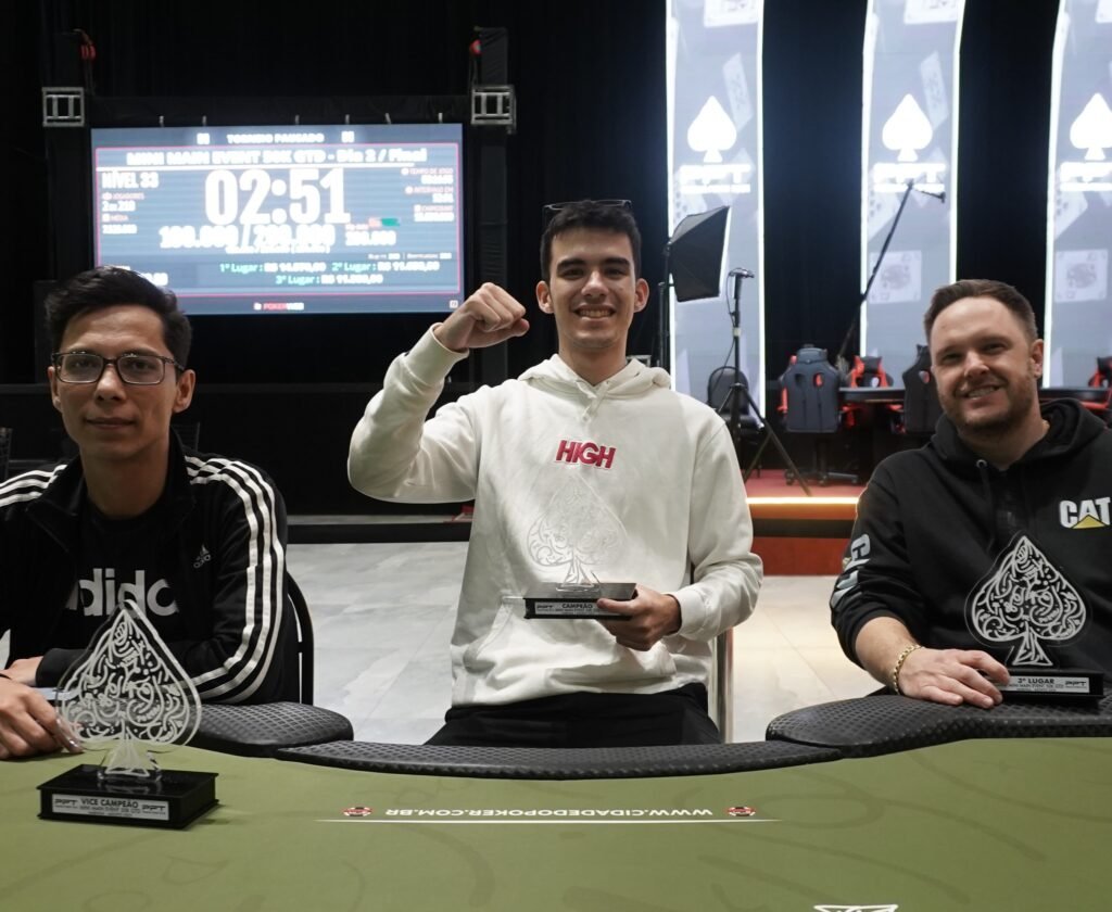 E o campeão desse torneio foi mais um mineiro, Mateus Brito Macedo, conhecido por Sagate, que desde o dia classificatório já estava confiante: “Meu time veio de BH para jogar a grade completa no PPT, a estrutura está maravilhosa, nível de campeonato nacional e torneios muito bons. Eu comecei a acreditar bastante quando eu passei para o dia 2 com 180bb, pois eu runnei bem quando rolou aquelas brincadeiras de allin no escuro e eu me envolvi. Nesse momento achei que se eu jogasse meu melhor no dia 2 a cravada era possível”.