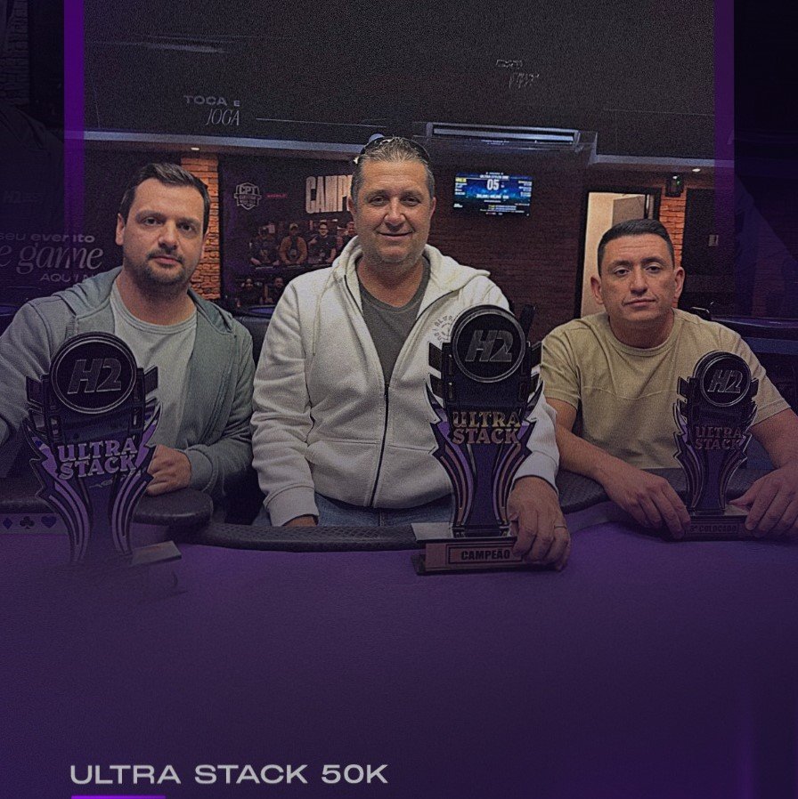 Esse torneio realizado no H2 Club Curitiba teve buy-in de R$ 300 e garantia ao campeão de R$ 15.000. Entre as 87 entradas e 89 reentradas, quem levou o troféu do ULTRA STACK 50K foi Márcio Roberto, jogador frequente na casa.