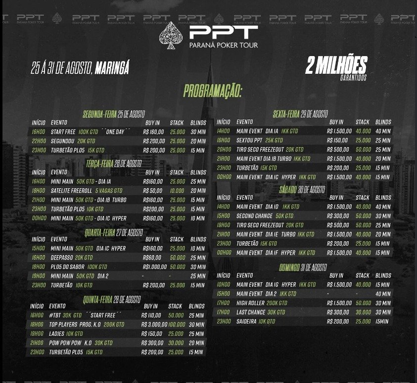 Está chegando o PPT (Paraná Poker Tour), em sua primeira edição. Será que poderíamos apelidar de evento do DOIDO?!? Seu idealizador, Alexandre Doido, como é conhecido, vem com uma abordagem bem interessante e ousada. Firmando a parceria com uma das estrelas do poker brasileiro, Eduardo Pires – também conhecido no mundo do poker como “Lobinho” – que traz junto sua experiência e conhecimento vasto sobre o joguinho para agregar ao evento e compor esse elenco.
