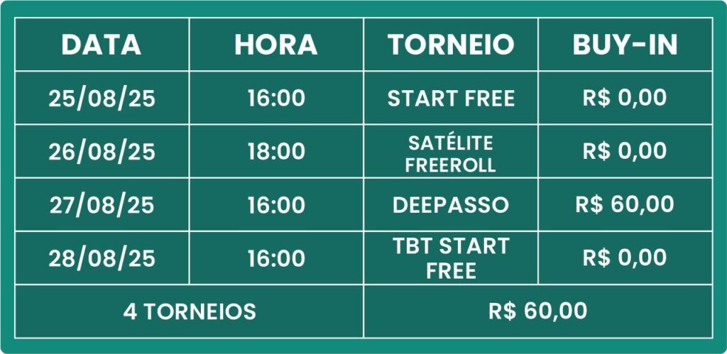 E é claro que o Portal Poker Sul traz aquela grade do sabor, para você ter a oportunidade de viver essa experiência. Serão 6 grades, de R$ 60,00 à R$ 9.080,00.