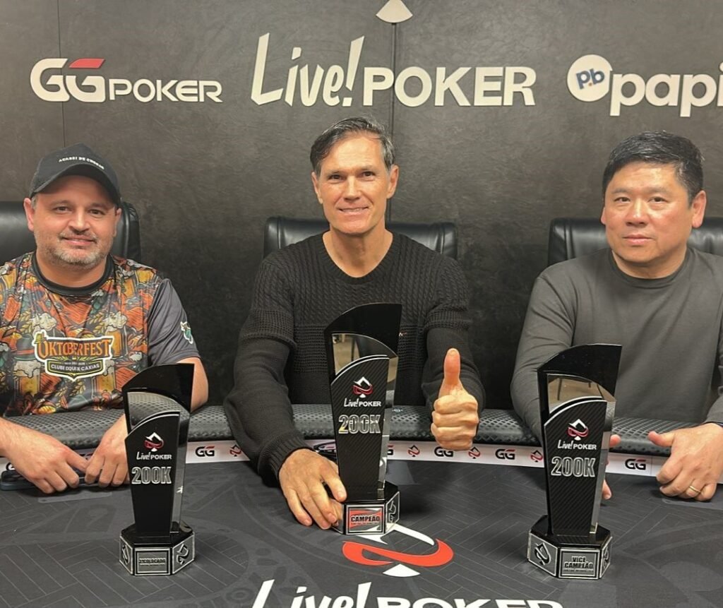 Esse foi o torneio dessa sexta (10) e sábado (11), um 200K jogados em 2 dias com buy-in promocional de R$ 850 e as entradas e reentradas de R$ 1.350, onde o late register vai até o 12º nível, que é no sábado, e contou com 86 entradas e 122 reentradas no total.